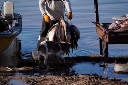 Almada has also felt the impact of the passing ships. Commercial vessels scour the bottom where gillnet leadlines should rest; buoys placed by private companies to guide their ships obstruct the movement of the nets. “You work for years to create a field, and they just ruin it,” Almada says. The ships also make the job more dangerous: “They go too fast, and the waves are too strong—it feels like you’re at sea. The other day my brother had to jump out of his canoe, or he would have gone under.”
