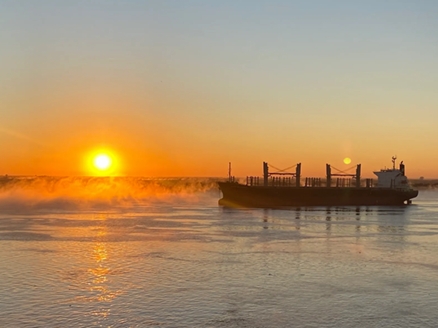 A commercial shipping vessel passing through Rosario on the Paraná River, Argentina, June 27, 2025
